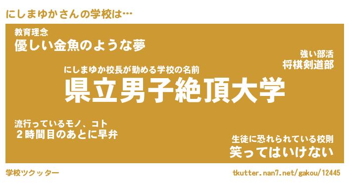 | 肩書あだ名 | 『にしまゆかCEO』『にしまゆか大統領』 |