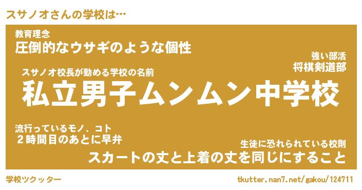 | 男性向けラノベタイトル風あだ名 | 『スサノオの憂鬱』 |