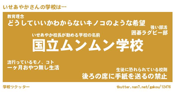 | 男性向けラノベタイトル風あだ名 | 『いせあやかの憂鬱』 |