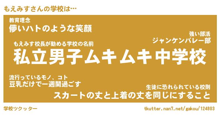 | 男性向けラノベタイトル風あだ名 | 『もえみすの憂鬱』 |