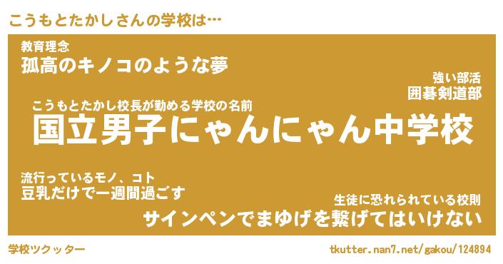 | 男性向けラノベタイトル風あだ名 | 『こうもとたかしの憂鬱』 |