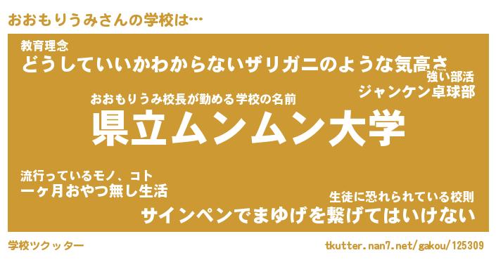 | 男性向けラノベタイトル風あだ名 | 『おおもりうみの憂鬱』 |
