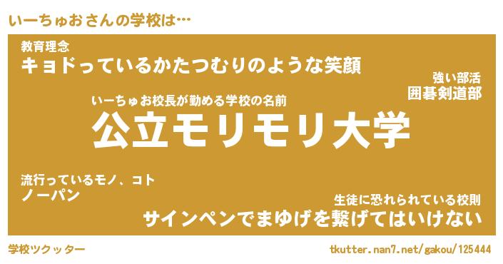 | 男性向けラノベタイトル風あだ名 | 『いーちゅおの憂鬱』 |