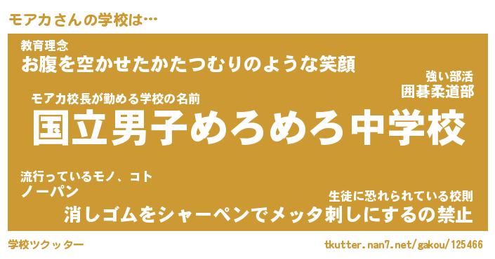 | 意味不明あだ名 | 『ペロリンモアカ』『モアカフォーエバー』 |