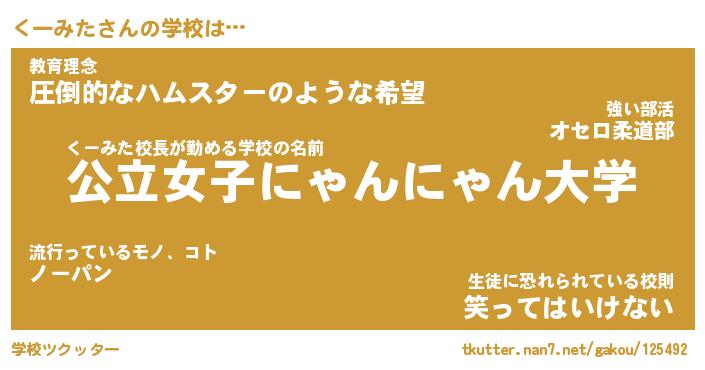 | 肩書あだ名 | 『くーみた社長令嬢』『くーみた総理大臣』 |