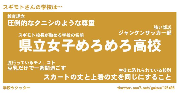| ファンタジー風あだ名 | 『スギフェル』『エターナルスギモトー』 |