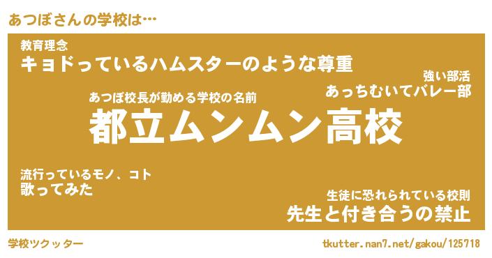 | 男性向けラノベタイトル風あだ名 | 『あつぼの憂鬱』 |