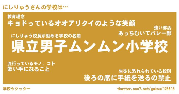| ファンタジー風あだ名 | 『ニシフェル』『エターナルニシリュウー』 |