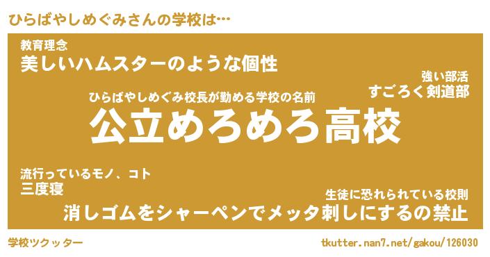 | 伝説のあだ名 | 『伝説のスナイパーひらばやしめぐみ』 |