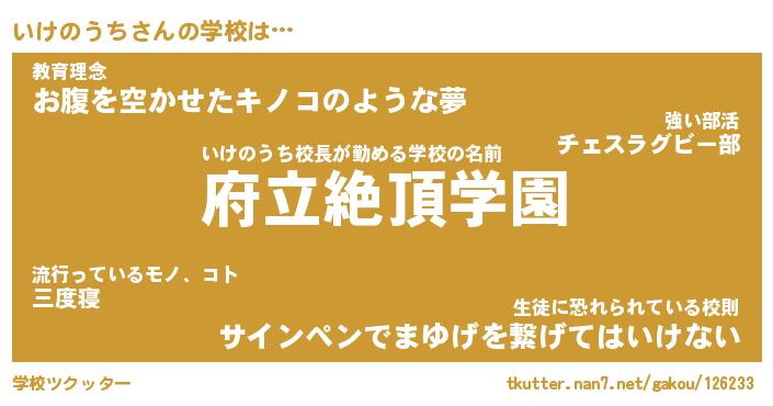 | 男性向けラノベタイトル風あだ名 | 『いけのうちの憂鬱』 |