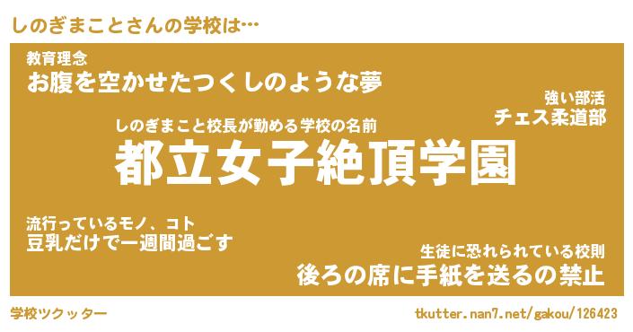 | 男性向けラノベタイトル風あだ名 | 『シノギマコトアートオンライン』 |