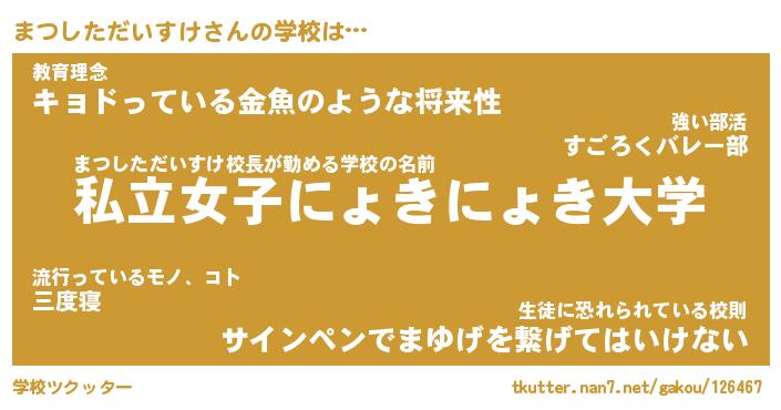 | 女子向けラノベタイトル風あだ名 | 『誰かこのまつしただいすけを説明してください! ~契約から始まるウェディング~』 |