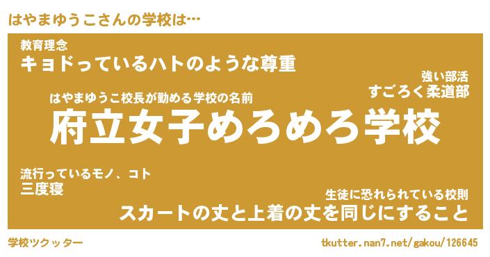 | 伝説のあだ名 | 『封印されしスナイパーはやまゆうこ』 |