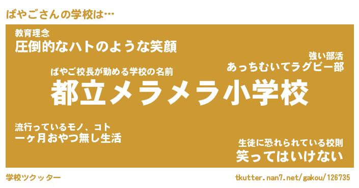 | 意味不明あだ名 | 『ペロリンばやご』『ばやごフォーエバー』 |