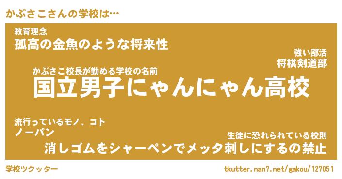 | 男性向けラノベタイトル風あだ名 | 『かぶさこの憂鬱』 |