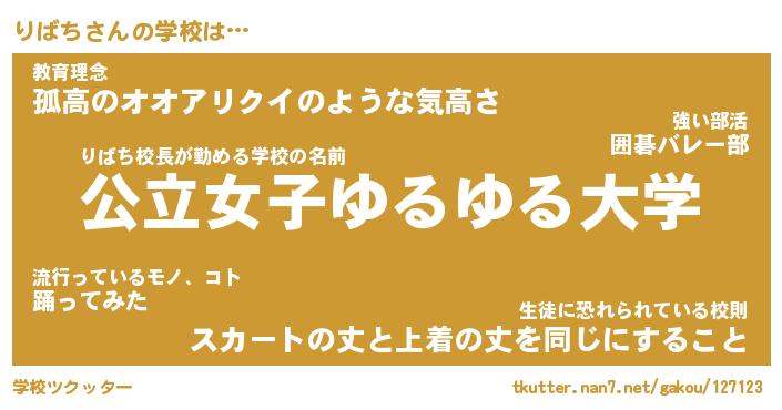 | ヘコむあだ名 | 『りばっふぃ~』『つくし』『りばお』 |