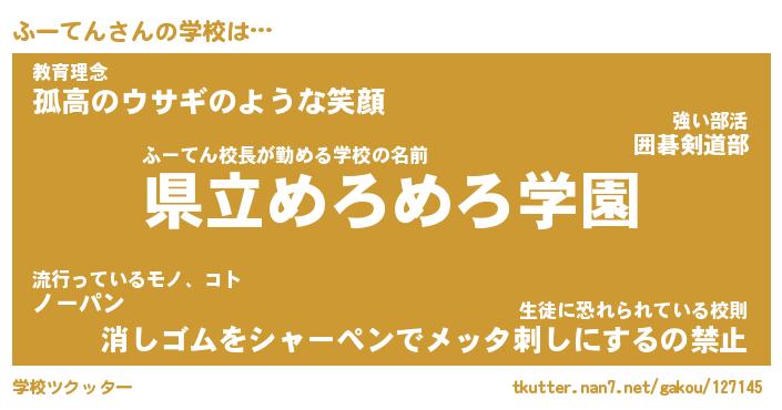 | 意味不明あだ名 | 『ペロリンふーてん』『永久保存ふーてん』 |