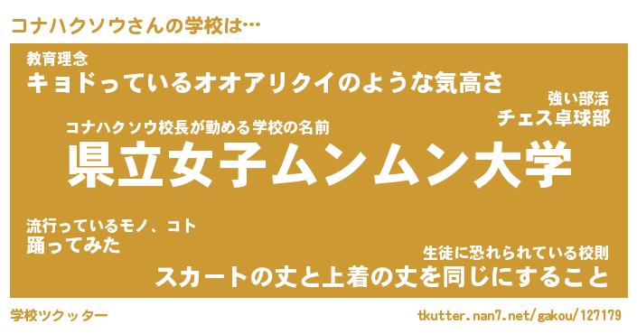| 肩書あだ名 | 『コナハクソウ店長』『コナハクソウ塾長』 |