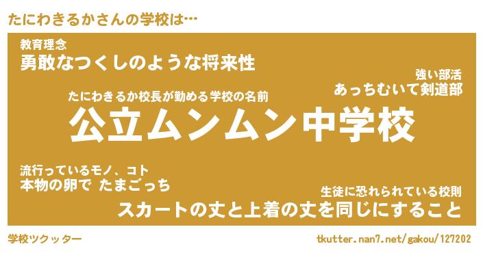 | 男性向けラノベタイトル風あだ名 | 『たにわきるかの憂鬱』 |