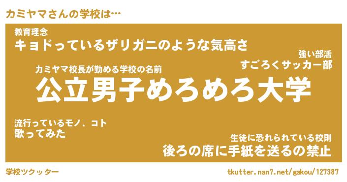 | 意味不明あだ名 | 『ペロリンカミヤマ』『永久保存カミヤマ』 |