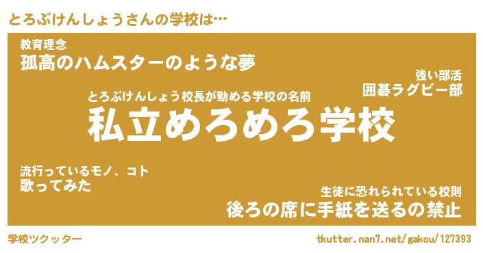 | 男性向けラノベタイトル風あだ名 | 『とろぶけんしょうの憂鬱』 |