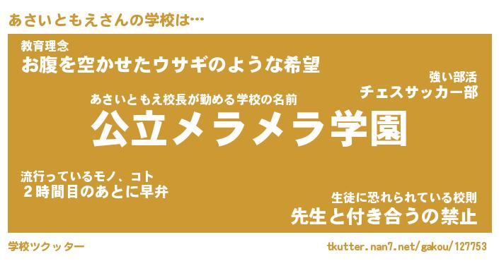 | 肩書あだ名 | 『あさいともえ社長』『あさいともえ校長』 |