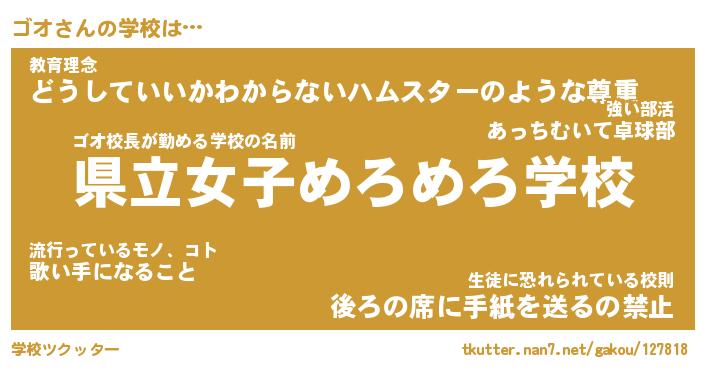 | 自動車の名前っぽいあだ名 | 『ゴオティマ』『ゴスラー』『ゴンR』 |