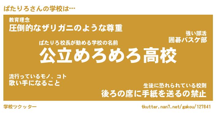 | 意味不明あだ名 | 『ペロリンぱたりろ』『永久保存ぱたりろ』 |