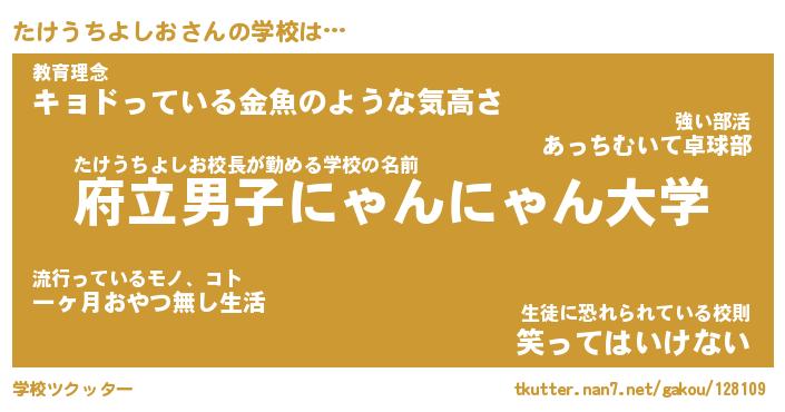 | ヘコむあだ名 | 『たけもー』『酢こんぶ』『たけを』 |