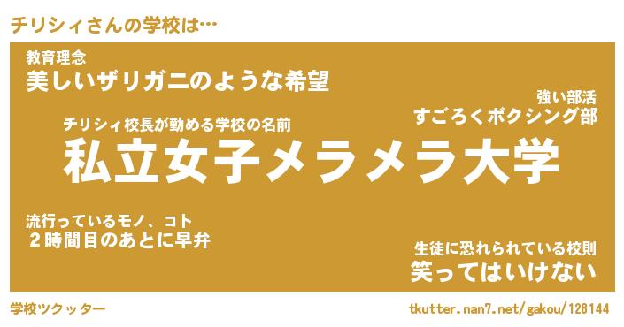 | 意味不明あだ名 | 『ペロリンチリシィ』『永久保存チリシィ』 |