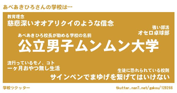 | 肩書あだ名 | 『あべあきひろ店長』『あべあきひろ班長』 |