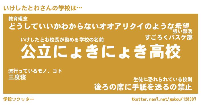 | 男性向けラノベタイトル風あだ名 | 『いけしたとわの憂鬱』 |