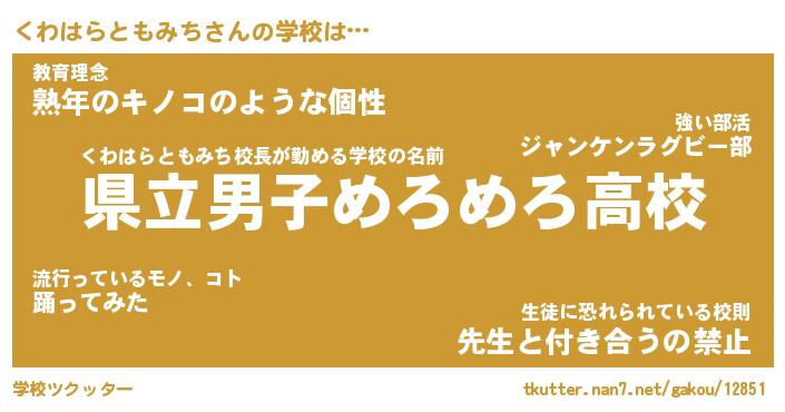 | 肩書あだ名 | 『くわはらともみち御曹司』 |