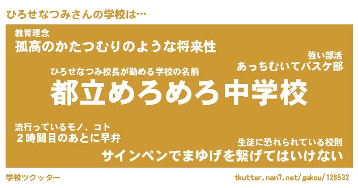 | 伝説のあだ名 | 『伝説のスナイパーひろせなつみ』 |
