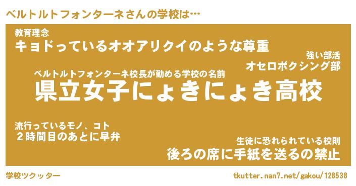 | 男性向けラノベタイトル風あだ名 | 『ベルトルトフォンターネアートオンライン』 |