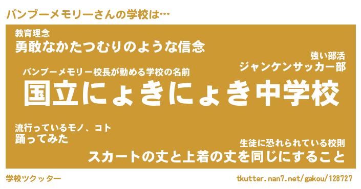 | 女子向けラノベタイトル風あだ名 | 『(仮)バンブーメモリーのやんごとなき事情』 |