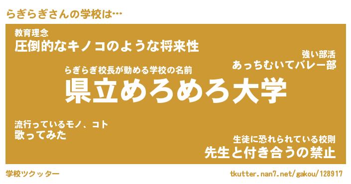 | 意味不明あだ名 | 『ペロリンらぎらぎ』『永久保存らぎらぎ』 |