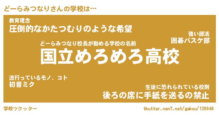 | 伝説のあだ名 | 『伝説のスナイパーどーらみつなり』 |