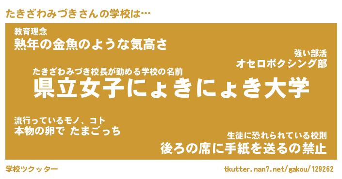 | 恥ずかしいあだ名 | 『プリティーたきざわみづき』『たきちん』 |