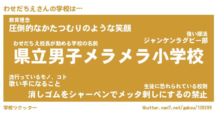 | ヘコむあだ名 | 『わせにー』『牛乳』『わせ太郎』 |