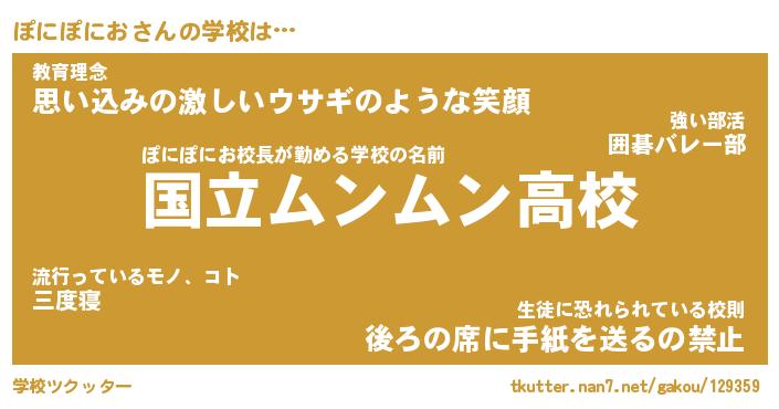 | 男性向けラノベタイトル風あだ名 | 『ぽにぽにおの憂鬱』 |