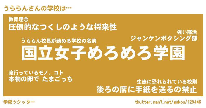 | 伝説のあだ名 | 『封印されしスナイパーうららん』 |