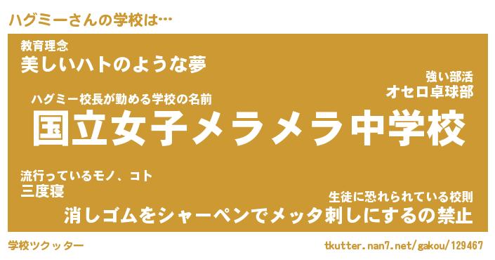 | ヘコむあだ名 | 『ハグにー』『つくし』『ハグを』 |