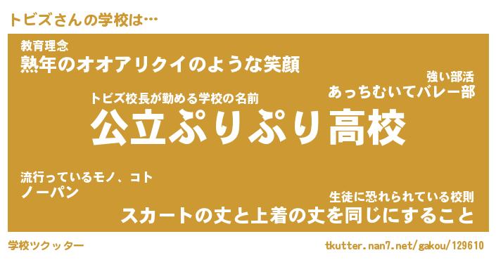 | 男性向けラノベタイトル風あだ名 | 『トビズの憂鬱』 |