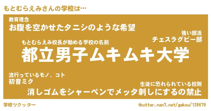 | 女子向けラノベタイトル風あだ名 | 『もとむらえみ姫と円卓の騎士』 |
