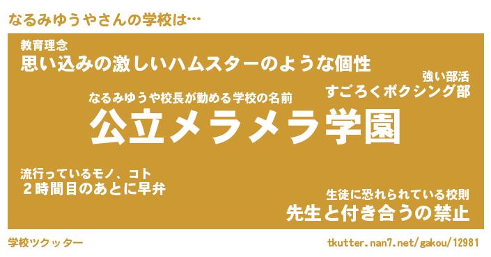| 男性向けラノベタイトル風あだ名 | 『なるみゆうやの憂鬱』 |
