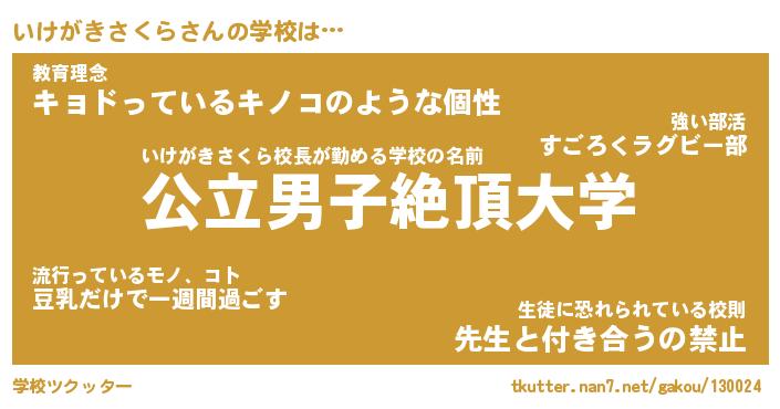 | 男性向けラノベタイトル風あだ名 | 『いけがきさくらの憂鬱』 |