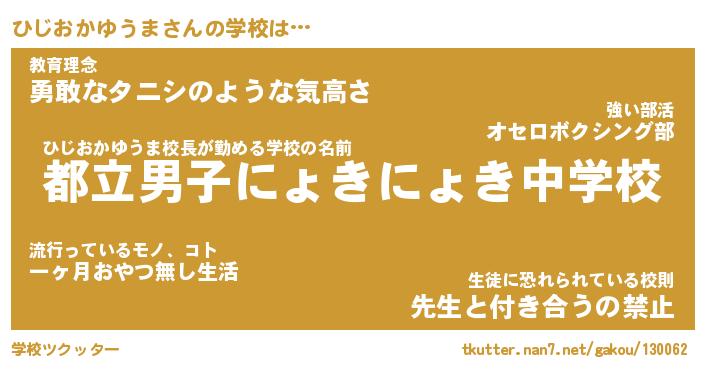 | 女子向けラノベタイトル風あだ名 | 『ひじおかゆうま姫と円卓の騎士』 |