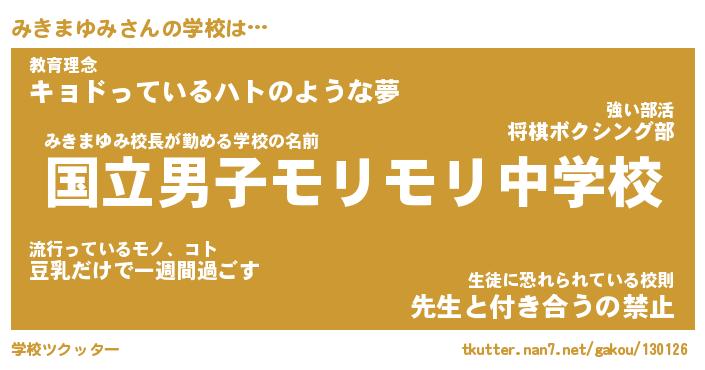 | ヒーロー風カッコイイあだ名 | 『スーパーミキマユミ』『銀牙騎士ミキ』 |