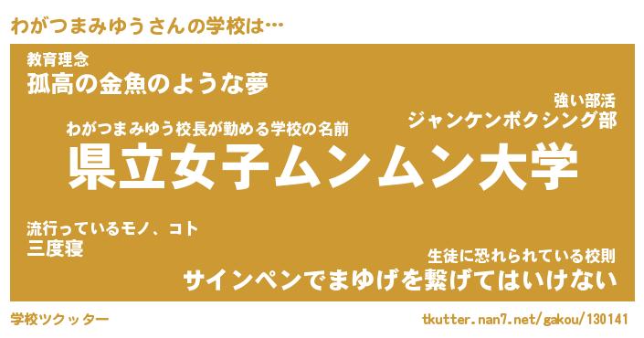 | 恥ずかしいあだ名 | 『プリティーわがつまみゆう』『わがちん』 |